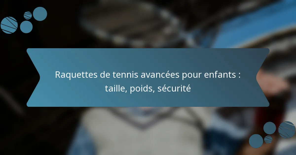 Les raquettes de tennis avancées pour enfants sont spécialement conçues pour améliorer les performances tout en priorisant la sécurité et le confort. Ces raquettes, fabriquées à partir de matériaux spécialisés, répondent aux besoins uniques des jeunes joueurs, favorisant un meilleur contrôle et une plus grande puissance. Choisir la bonne taille et le bon poids, généralement entre 8 et 10 onces, est essentiel pour garantir le confort et réduire le risque de blessure, permettant ainsi aux enfants de profiter pleinement du jeu.