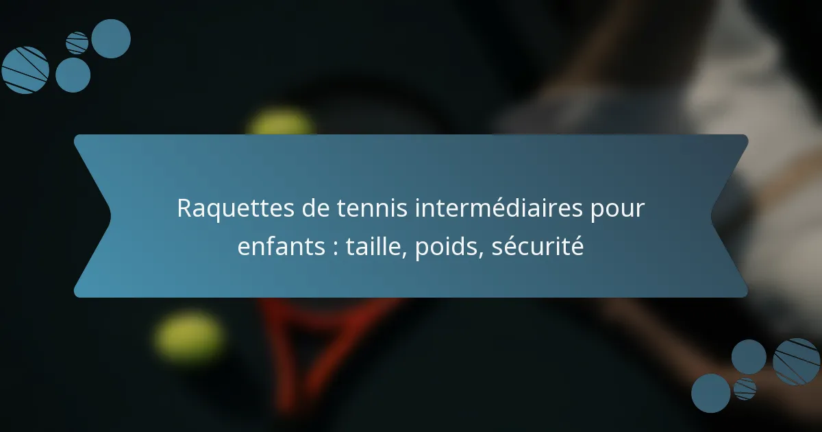Choisir la bonne raquette de tennis intermédiaire pour les enfants nécessite une attention particulière à la taille, au poids et aux caractéristiques de sécurité. La taille de raquette appropriée est déterminée par l’âge et la taille de l’enfant, favorisant le confort et un jeu efficace. Les poids varient généralement de 8 à 10 onces, ce qui aide à contrôler le swing tout en réduisant le risque de blessure. De plus, les caractéristiques de sécurité sont essentielles pour garantir une expérience de jeu positive et sécurisée.